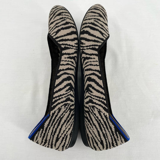Rothy’s The Flat in Black Zebra Neutral Tapue Tan Printed Sustainable Flats Size 6.5