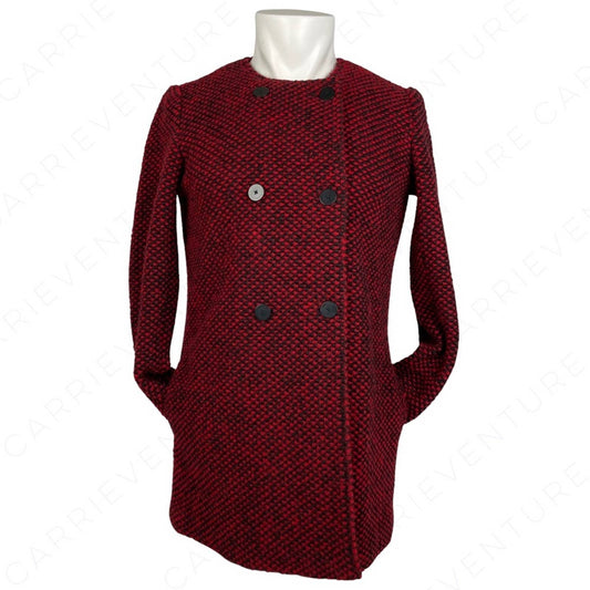 Joes Jeans Coat Wool Blend Red Black Diamond Pattern Boucle Heavy Overcoat Joe's Size S