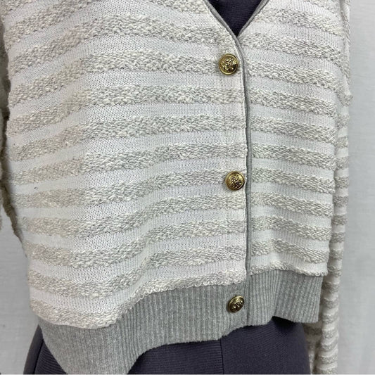 Maison Jules Sweater Gray Striped Cropped Knit Cardigan Coastal Academia Preppy Size S